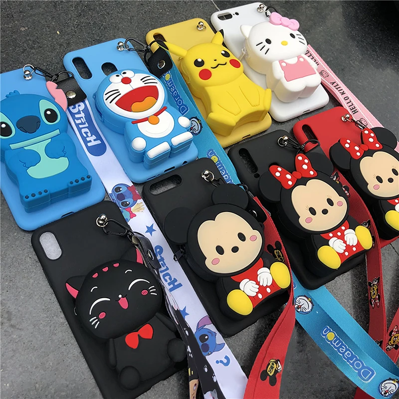 case for 7 plus 3D cute cartoon animal wallet lanyard phone case for iphone X XR XS 5S SE 11 pro MA